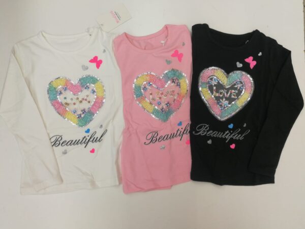 MAGLIA RAGAZZA A GIROCOLLO STAMPATA CON STRASS APPLICATI.