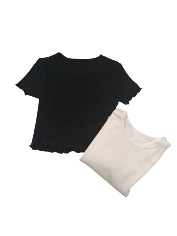 Questo set comprende due magliette a costina: una nera e una bianca.