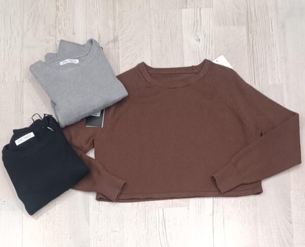 croptop  in morbida e calda viscosa con collo rotondo per poter indossare un lupetto o un a camicia.