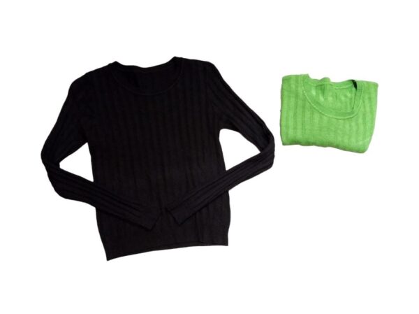 Il capo, a tinta unita, presenta un motivi tramato e dettaglio di girocollo.