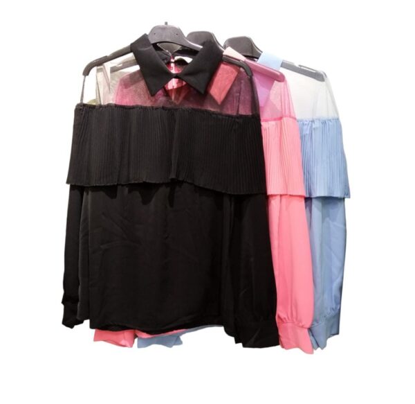 Camicia da donna, con dettaglio di velato sul decoltè.
