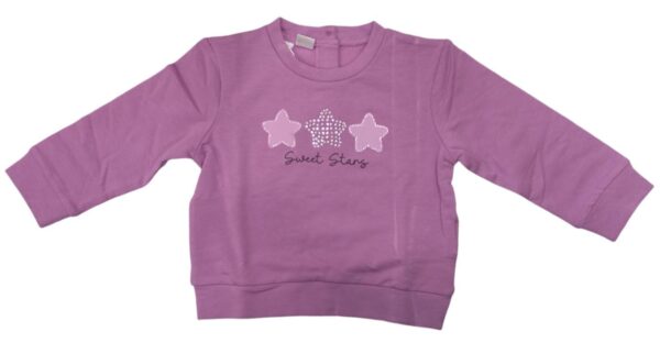 Maglia felpata bambina IDO.Si presenta con scollatura a giro,apertura a bottoncini sul retro e stampa glitterata frontale.
