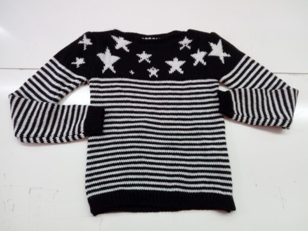 MAGLIONCINO LANA BIMBA A RIGHE CON STELLE BIANCHE E COLLO A BARCA.