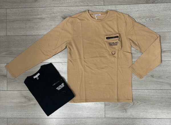 MAGLIA A MANICA LUNGA CON TASCHINO FRONTALE CON ZIP.