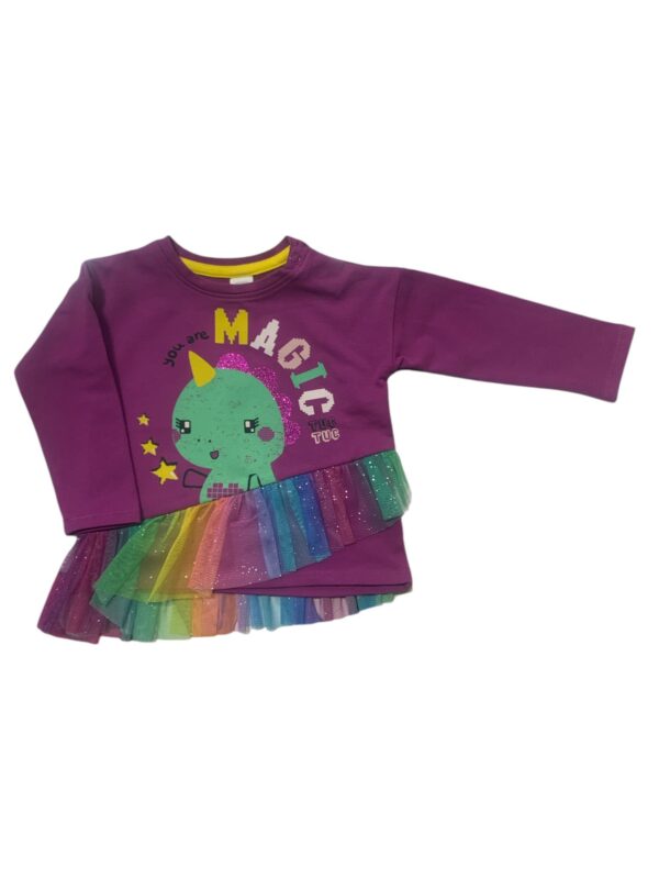 MAGLIA TUC TUC IN COTONE CON TULLE COLORATO E BRILLANTINATO AVANTI E DIETRO,