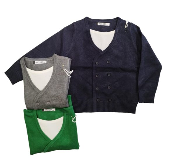 Maglioncino per neonato, in modello finto giacchino con maglietta.