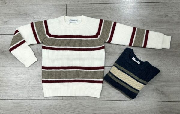 MAGLIONE A RIGHE IN MAGLIA MORBIDA A MANICA LUNGA, CALDA E CONFORTEVOLE. IL DESIGNE A COSTE DONA STRUTTURA E UN LOOK MODERNO PER LA STAGIONE FREDDA.