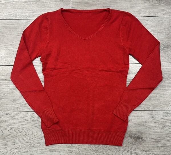 morbidissimo maglioncino a punta di colore rosso, ideale per le festivita’.