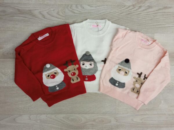 MAGLIONE BIMBA NEONATA GIROCOLLO CON STAMPA NATALIZIA.