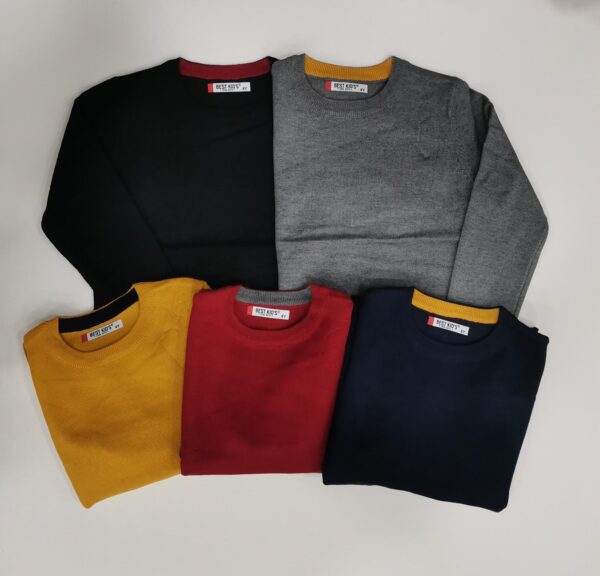 MAGLIONE BIMBO MANICA LUNGA A GIROCOLLO IN TINTA UNITA IN MORBIDO TESSUTO ELASTICIZZATO.