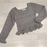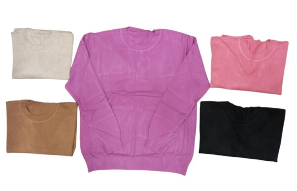 Maglioncino donna in lana rasata con scollatura a giro e polsini.Presenta dettaglio leggermente in rilievo sulla parte frontale.