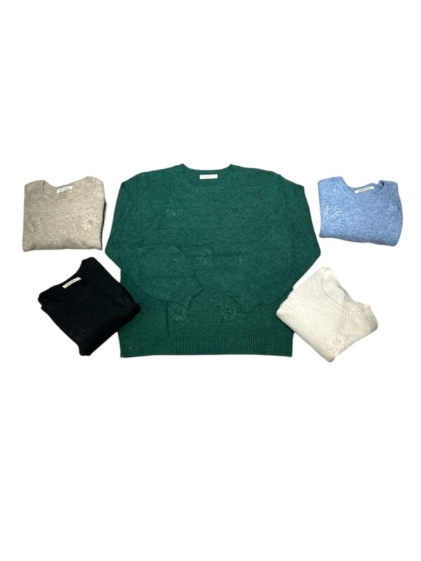 maglione da donna con ricamo fiore tinta su tinta