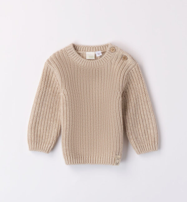 Maglioncino per neonato iDO 3-9mesi realizzato in tricot di cotone misto lana. Il modello presenta apertura sulla spalla con bottoni e fantasia tinta unita.