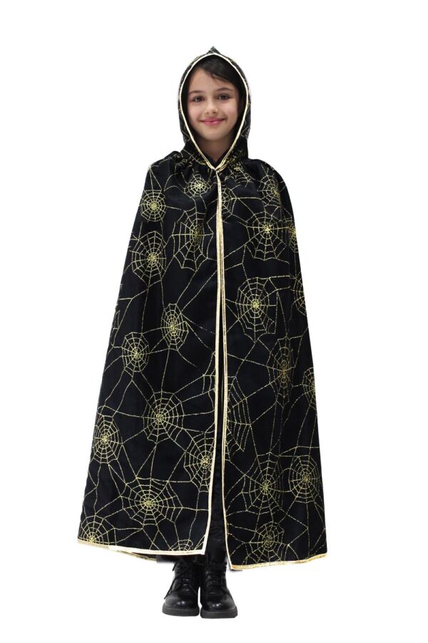 Mantello Cappuccio Ragnatela Oro Accessorio Di Carnevale