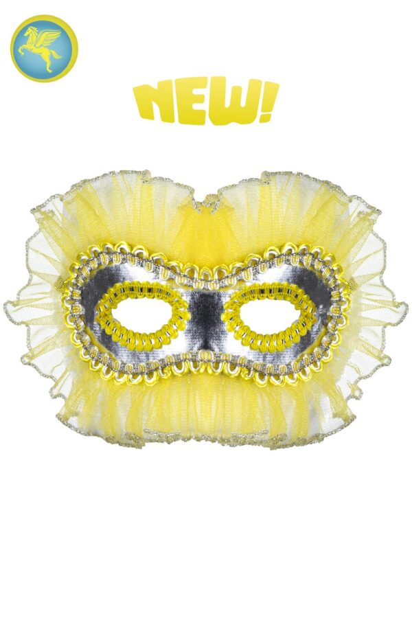 La Maschera Artigianale con Merletto Gialla è disponibile in taglia unica ed è adatta per aggiungere un tocco di fantasia al vostro costume.La Maschera è in tessuto laminato, arricchita con pizzo rachel arricciato, passamaneria lamè e perline. DAME, PRINCIPESSE, REGINE, MASCHERE, ARTIGIANALE, Maschereartigianali, ACCESSORINOVITA2021, MASCHERADIMERLETTO