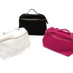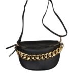 CHIUSURA CON DETTAGLIO METALLICO DORATO, COMPATTA MA ABBASTANZA CAPIENTE PER L’ESSENZIALE.