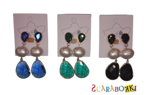 orecchini con pendeti di perle e pietre .