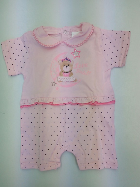 PAGLIACCETTO NEONATA,MANICA CORTA CON COLLETTO,ORSETTO DISEGNATO CON LUNA E STELLE,