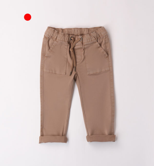 Pantalone bambino in cotone IDO,con elastico in vita e coulisse,una tasca posterire lato destro e tasche anteriori.