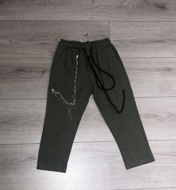 PANTALONE BIMBO IN LINO,CON ELASTICO IN VITA E LACCI PER REGOLARE LA VESTIBILITA,CON CATENELLA PENDENTE SU UN LATO,TASCHE LATERALI.