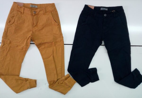 PANTALONE BIMBO ALL’AMERICANA CON POLSINI ALLA CAVIGLIA,IN FUSTAGNO.
