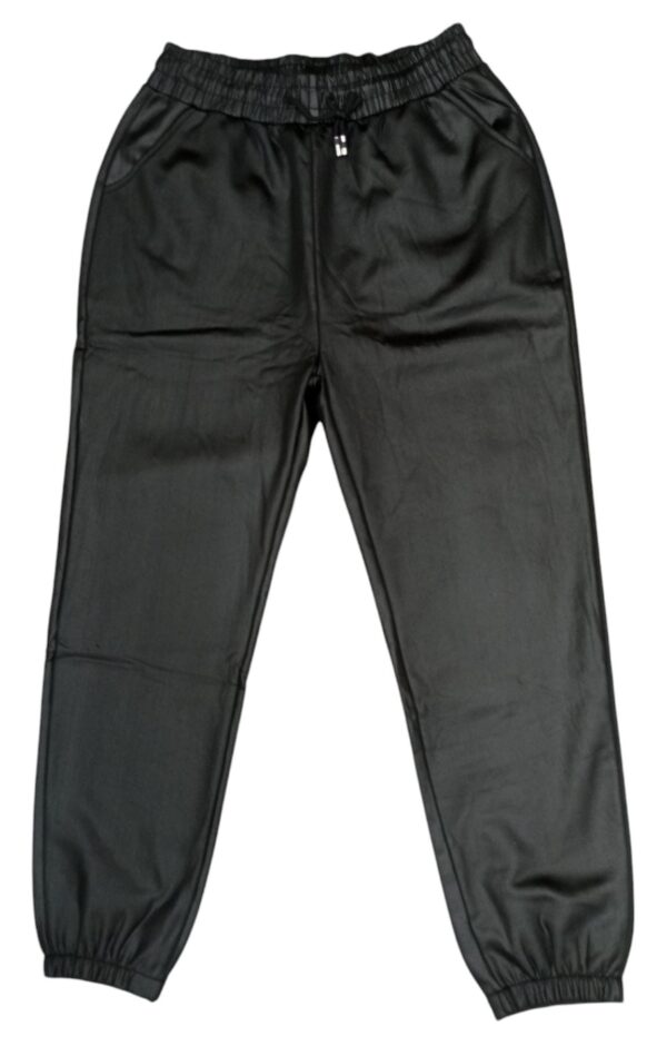 Pantalone donna effetto lucido,felpato all’interno.Presenta elastico in vita con coulisse ed elastico alla caviglia.