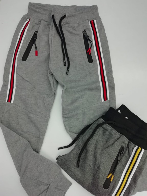 PANTALONE TUTA BIMBO CON BANDE LATERALI, TASCHE CON CERNIERE E LACCI.