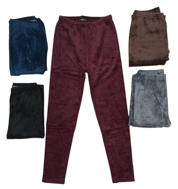 Pantaloni elasticizzati donna in morbida ciniglia.Si presentano a tinta unita con elastico in vita.Modello skinni.