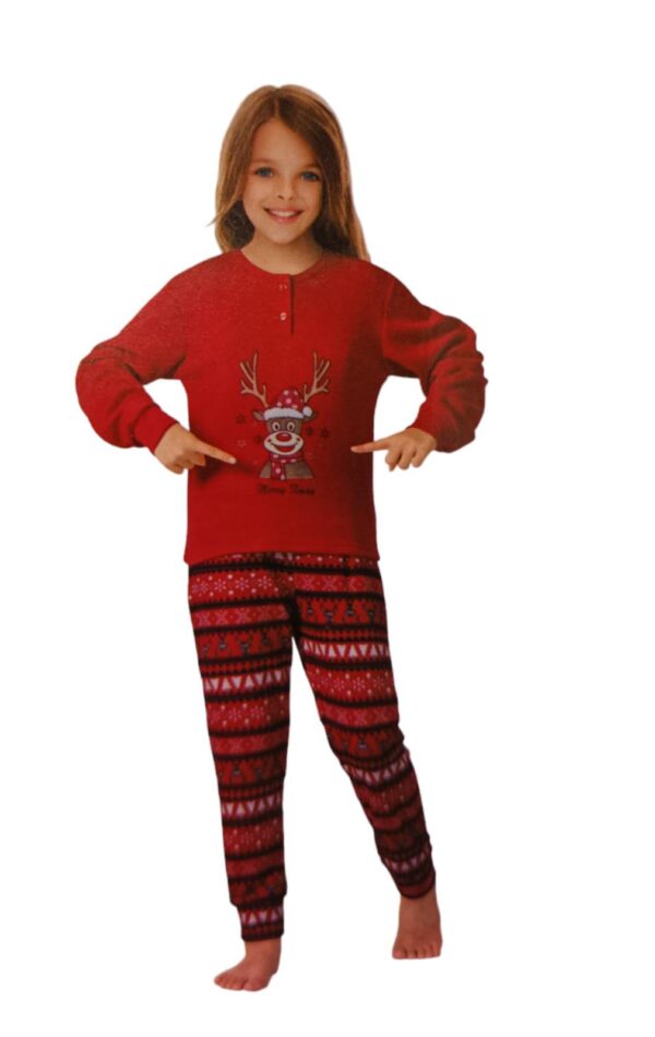 piagiama bambino, bambina unisex in morbido caldo cotone. renna ricamata davanti, pantalone stampato tema natalizio.