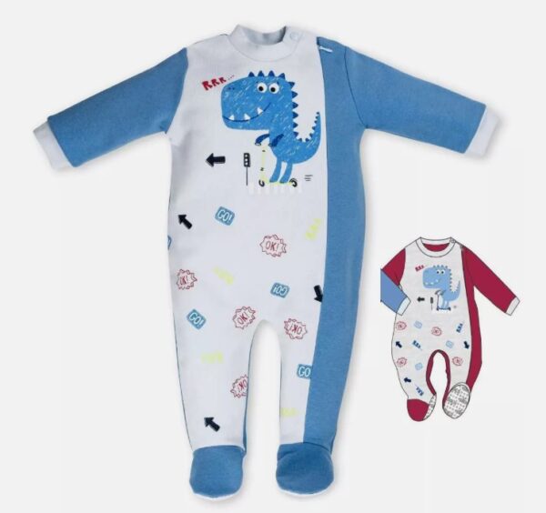 Pigiamone intero da neonato con piedini antiscivolo in morbido e caldo cotone felpato con stampa o ricamo.