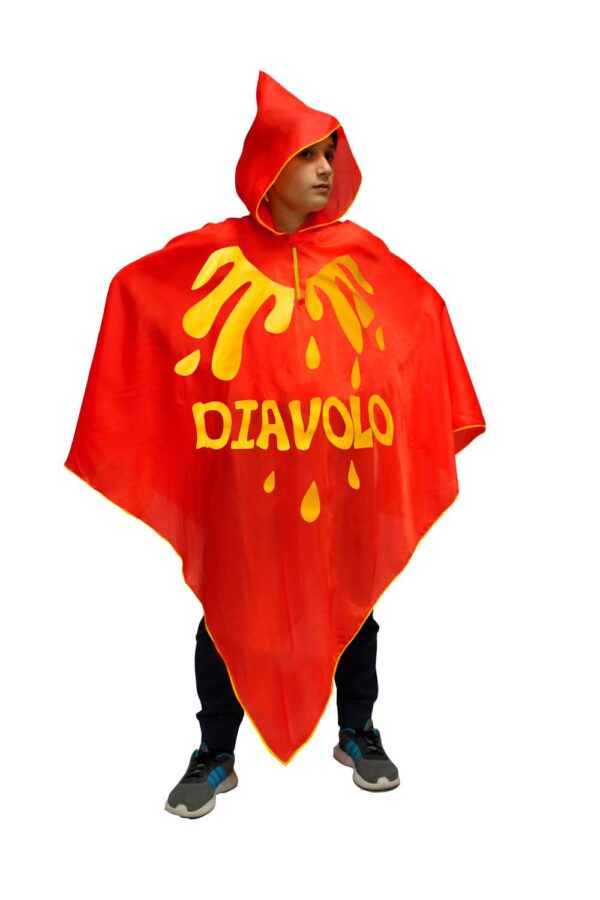 Il Costume Poncho Diavolo rosso è disponibile in 2 taglie a partire da S 3/6 ANNI fino a L 7/12 ANNI confezionato nella pratica busta con appendino.Il Costume da Diavolo rosso è perfetto per le feste di compleanno, Travestimenti, Halloween, Carnevale, Cosplay, Giochi di finzione, giochi di ruolo e sfilate di carnevale.Design italiano: il nostro Costume con taglio a Poncho e cappuccio incorporato è orlato con taglicuce a contrasto giallo arricchito con fiamme e scritta diavolo stampato Materiale: tessuto 100% poliestereAvvertenze: indossare sotto visione di un adulto.Istruzione lavaggio: lavare a mano a bassa temperatura, lavare le parti separatamente, non strizzare, stirare a 110 gradi massimo a rovescio. MANTELLIHALLOWEEN, MANTELLOHALLOWEENBAMBINO, SLIDEMANTELLIHALLOWEEN, SLIDEMANTELLIDIHALLOWEEN, MANTELLIDIHALLOWEENBAMBINO,SLIDEMANTELLIHALLOWEENBAMBINO, slidecostumihalloweenbambino