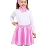 Il set anni 50 celeste bambina di raso è disponibile in 3 taglie a partire dalla S 3/5 ANNI fino alla L 9/12 ANNI.Il set e composto da 3 elementi:gonna, fascia e foulard.