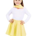 Il set anni 50 rosa bambina di raso è disponibile in 3 taglie a partire dalla S 3/5 ANNI fino alla L 9/12 ANNI.Il set e composto da 3 elementi:gonna, fascia e foulard.