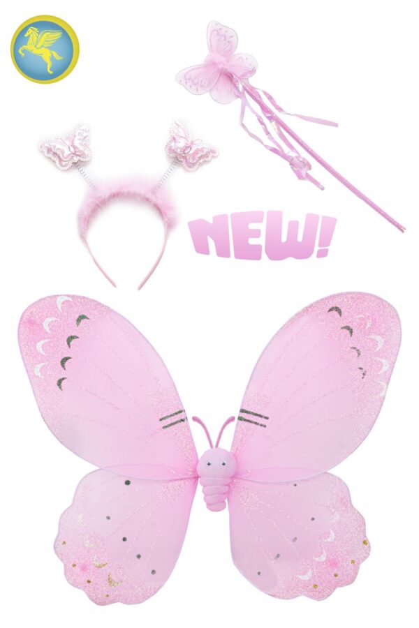 Il set farfalla rosa 3 elementi ? disponibile in taglia unica ed ? adatto per aggiungere un tocco di fantasia al vostro costume. notterosa, danza, ACCESSORINOVITA2021, FATA, FATINA, CAPPELLOANIMALETTI