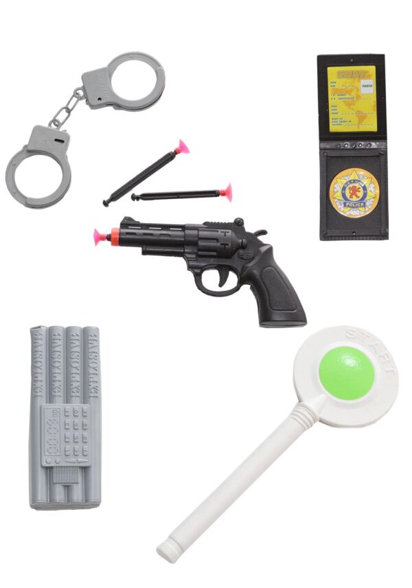 Il set police è composto da 5 elementi: pistola, manette, radio, distintivo e paletta.E’ adatto per arricchire il vostro outfit. POLIZIOTTO, CARABINIERE, PALETTA, COMPLETO, GIOCO, INSIEME