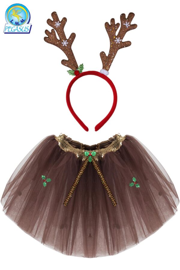 Il set renna di natale è disponibile in taglia unica ed è adatta dalla taglia di 38 a 48.Il set è composto dal cerchietto renna più gonna.La gonna è lunga 40 cm circa, con elastico di paillettes in vita e composta da cinque strati di tulle sovrapposti. ACCESSORINOVITA2021, NATALE, renna, SETRENNA, SET RENNA, CERCHIETTO, FRONTINO, SLIDERENNEDINATALE