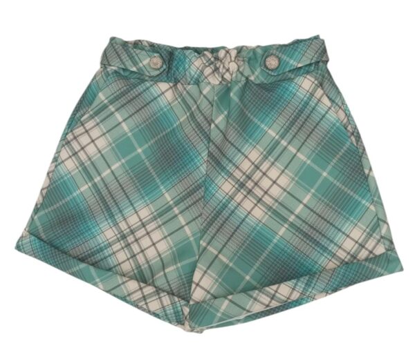 short da bambina fantasia tartan con elastico in vita ed applicazione luxury.