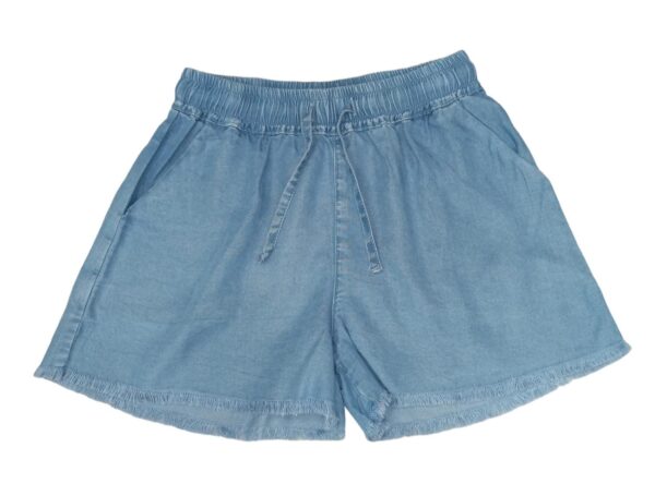 Short in tessuto chambry Ido bambina con fondo sfrangiato.Regular fit,coulisse in vita.