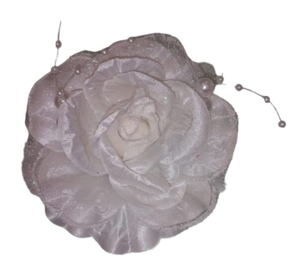 Fermaglio + Spilla fiore bambina in tulle bianco on applicazioni perline.