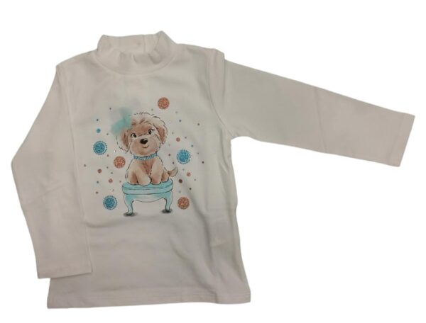 T-shirt bambina IDO.La t-shirt e’in caldo cotone e presenta collo a lupetto con apertura a bottoncini sul retro e stampa frontale con dettagli tulle e glitter.