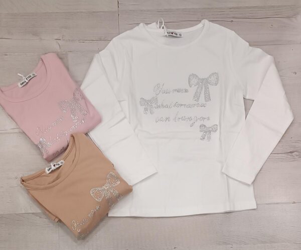 T-SHIRT BIMBA CALDO COTONE CON DECORO FRONTALE STRASS