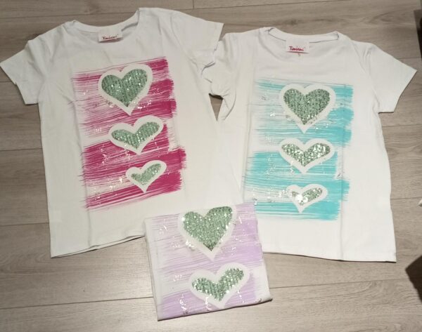 TINTA UNITA CON PAILLETTES CHE FORMANO UN CUORE SUL DAVANTI