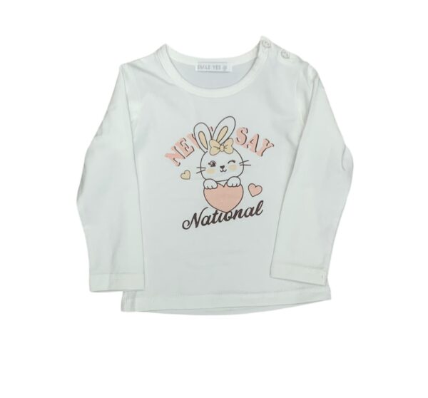 T-shirt neonata in caldo cotone.Si presenta con scollatura a giro,apertura laterale a bottoncini e stampa frontale.