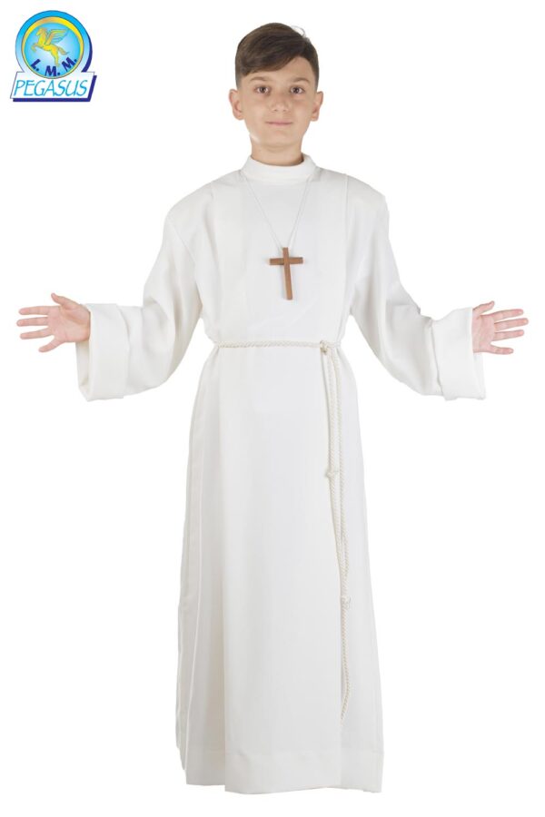 La tunica prima comunione con piegoni è disponibile in 7 taglie a partire da 105 CM fino a 140 CM.Tunica con cingolo e croce.Tessuto: Tela100% Poliestere.Prodotto realizzato in Italia. PRIMACOMUNIONE, COMUNIONE, TUNICAPERCOMUNIONE, TUNICAPERCOMUNIONEBAMBINO, slideprimacomunione