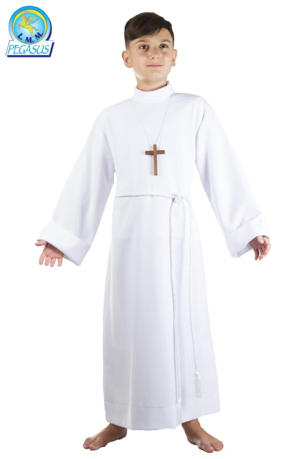 La tunica prima comunione è disponibile in 7 taglie a partire da 105 CM fino a 140 CM.Tunica con cingolo e croce.Tessuto: Tela100% Poliestere.Prodotto realizzato in Italia. PRIMACOMUNIONE, COMUNIONE, TUNICAPERCOMUNIONE, TUNICAPERCOMUNIONEBAMBINO, slideprimacomunione