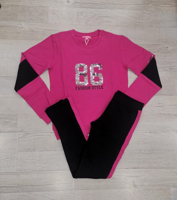 COMPLETO TUTA BIMBA DUE PEZZI CON SCRITTA CON PAILLETTES E TESSUTO FELPATO.