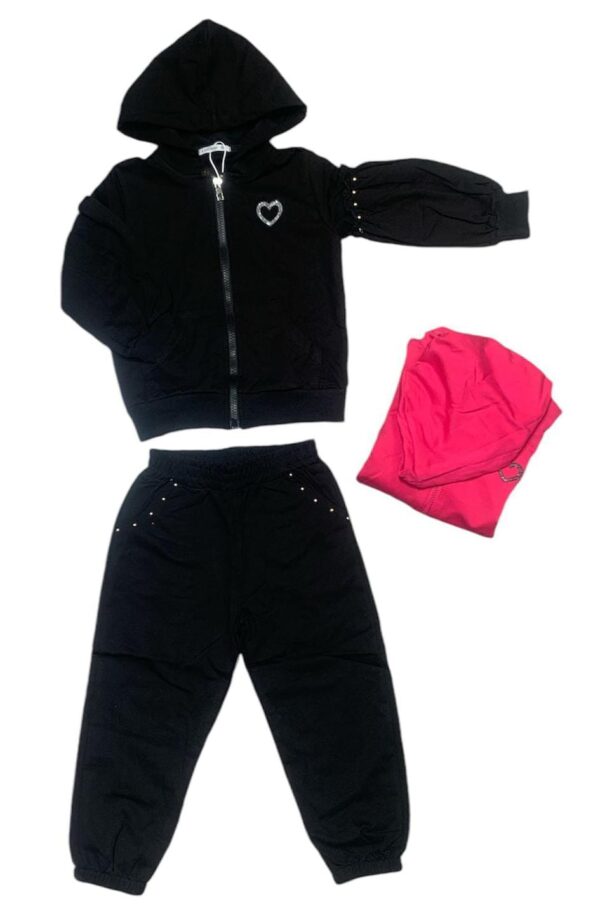 DA BAMBINACON CAPPUCCIO E STAMPA CON CUORE GLITTERATA CON ELASTICO ALLE CAVIGLIE.