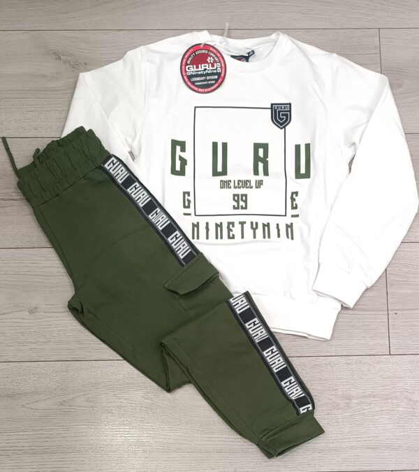 COMPOSTO DA FELPA CON POLSINO E STAMPA ” GURU ” SUL DAVANTI