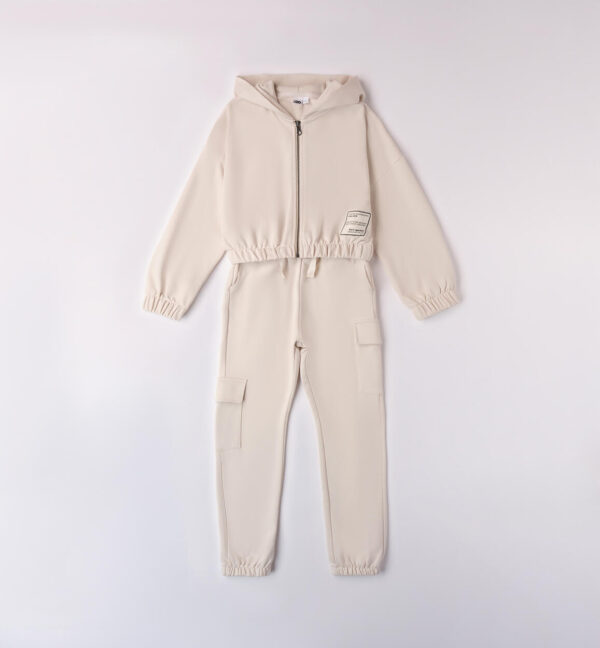 Tuta sportiva per ragazza iDO in felpa autunnale 100% cotone. La felpa presenta apertura con zip, fantasia tinta unita e polsini elasticizzati sul fondo e sulle maniche. Il pantalone ha vita elasticizzata con coulisse tono su tono, tasconi laterali e polsini sul fondo.