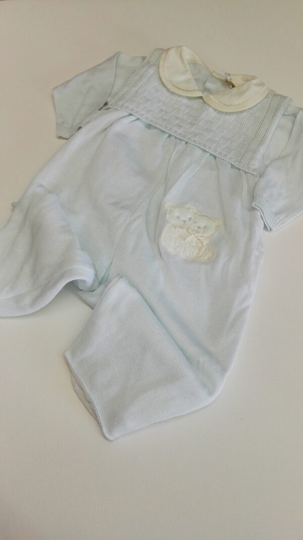 TUTINA NEONATO MODELLO SALOPETTE CON RICAMO DI ORSETTI SULLA GAMBA E CON MAGLIA CON COLLETTO ABBINATA.
